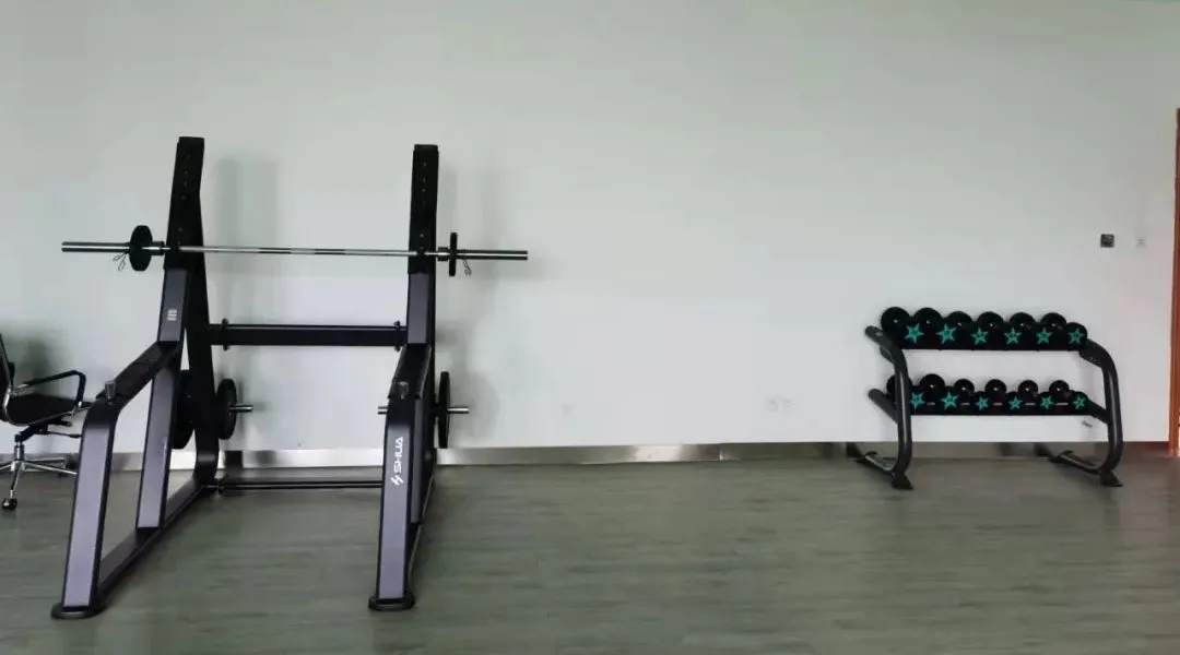 該單位有氧器械采用了兩臺舒華商用跑步機和一臺橢圓機。力量器械采用了一臺舒華史密斯器,搭配啞鈴、綜合訓練椅鍛煉。